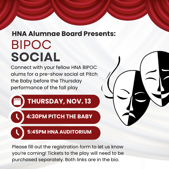 Join other HNA BIPOC Alumnae for an evening of connection and support of your alma mater on Thursday, November 13! We hope to see you there.