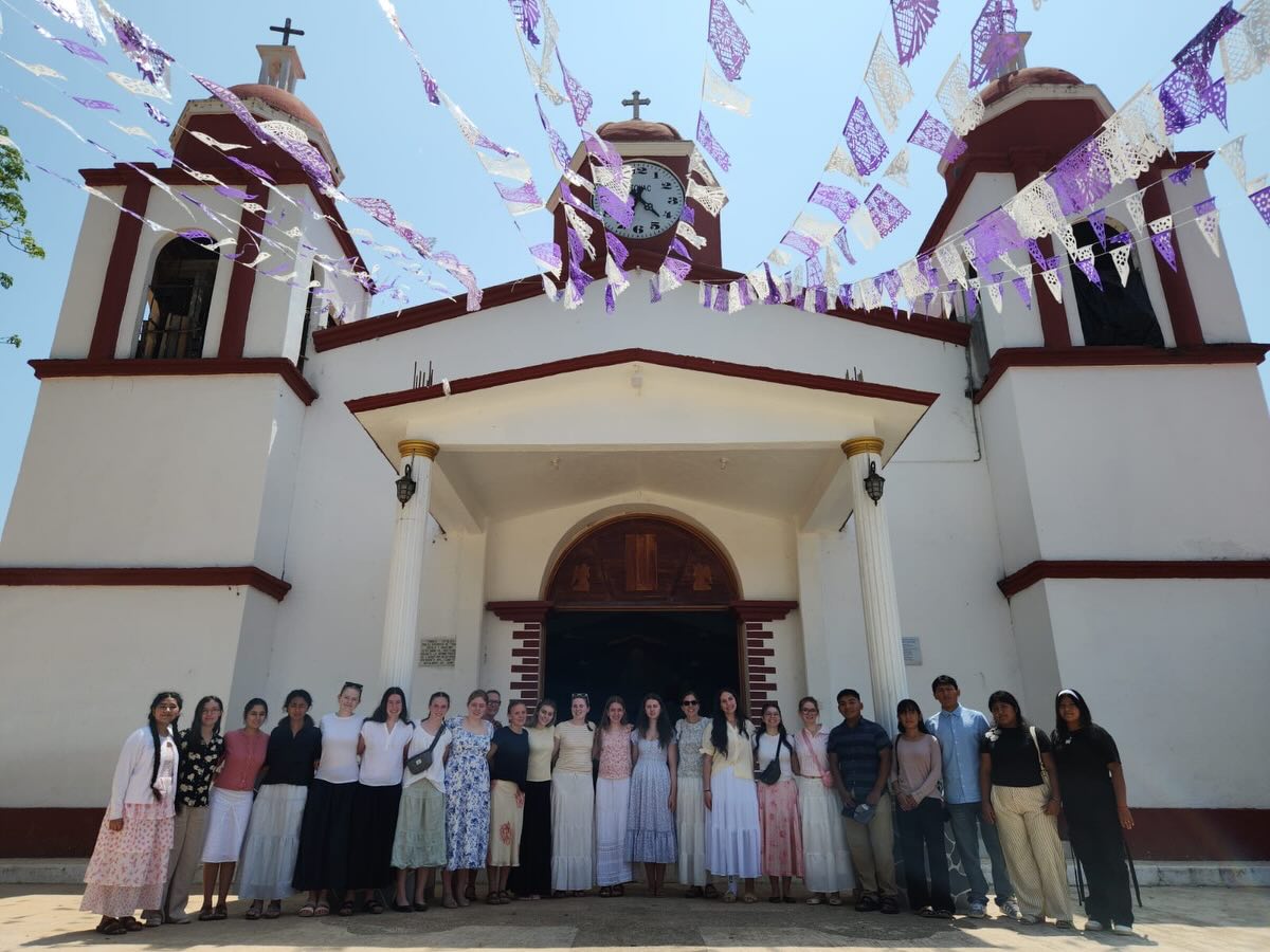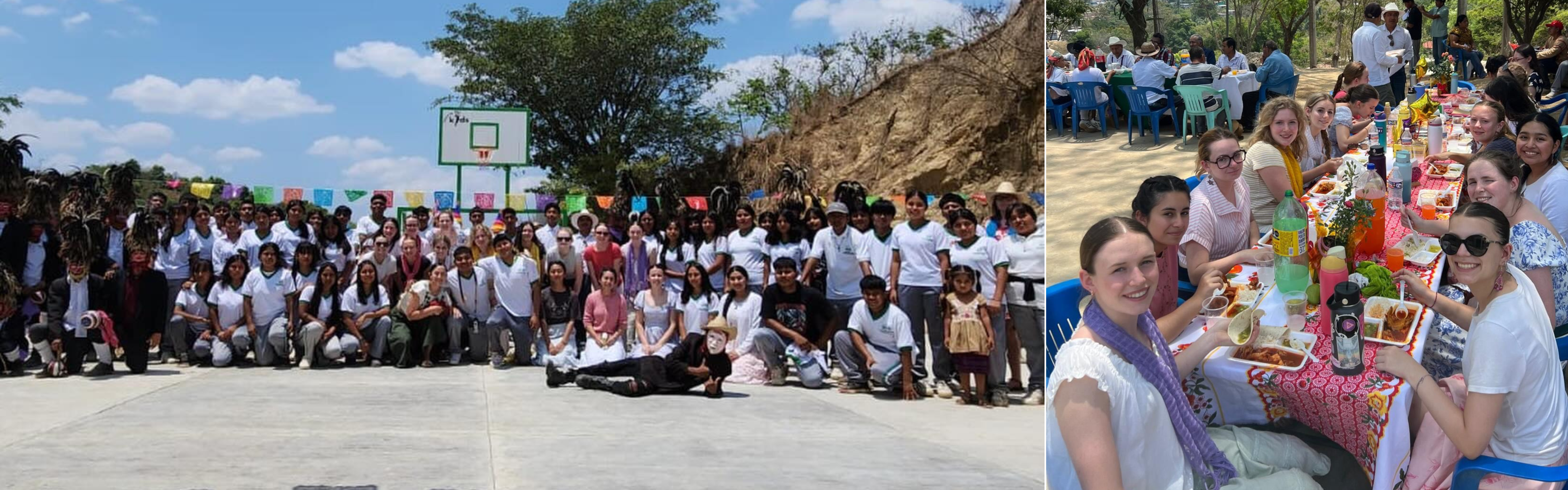 On April 4th, our group travelled on a long bus ride from Oaxaca City to San Juan Jicayan. After being on the road for a while, spirits were low, and the one thing on everyone's mind was sleep. However, the moment we arrived at the school, our energy was revived. There, we saw community members holding welcome signs, waving, and cheering for us newcomers. They quickly helped us settle in by gifting us special fruits from the community, explaining their significance, and providing us with welcome letters and tasty food to warm our hearts and bellies.